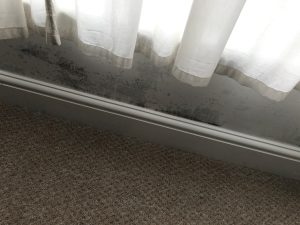 If this happens, the warm moist air is going to condense onto that surface – turning from a gas into a liquid, and once that happens, you have condensation. If that surface is never allowed to dry properly, then it will create the perfect environment onto which a black mould spore might land and begin growth.