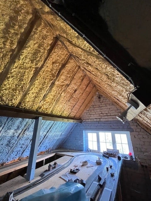 Spray foam insulation is commonly used on spaces like attics because it is a quick and easy way to insulate otherwise complicated sections of roofing and timber rafters.