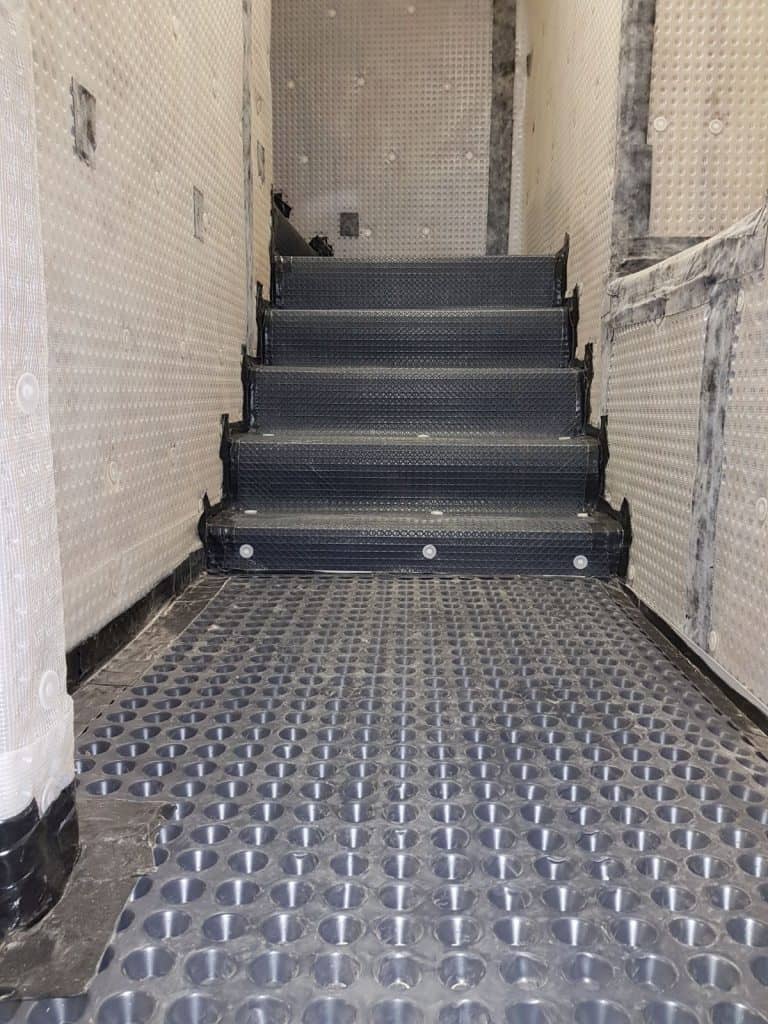 Cavity Drain Membrane is an internally applied basement wall/floor waterproofing system. The cavity drain membrane is impermeable high-density Polyethylene or Polypropylene Membrane studs to form a cavity when fixed to the wall and floor.
