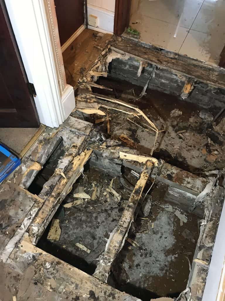 Timberwise London was called upon to carry out a damp and timber survey, paying particular attention to the ground floor of the property to determine the extent of a dry rot fungus (Serpula Lacrymans) outbreak. As the Property A and neighbouring property, Property B had suffered a water leak due to a defective water pipe.