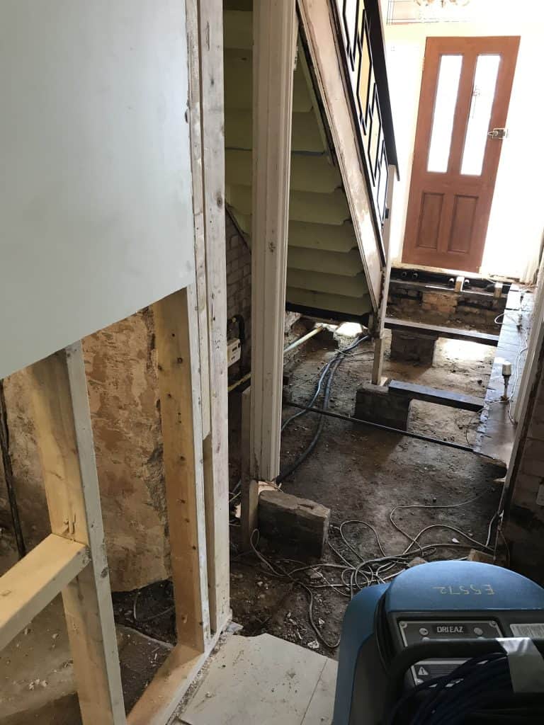 Products Used:  Lignam Pro (Double), Brunosol Concentrate, Dri Wise, Bactdet D05 (for mould)