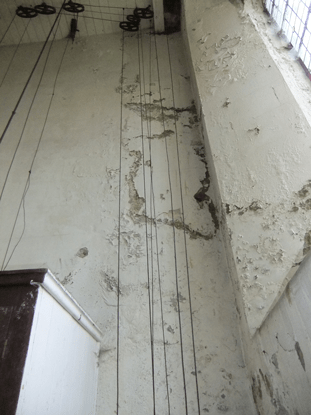 At the top of the tower, penetrating damp was evident due to the damage to internal walls. Woodworm was also were evident in the two large beams that supported the floor.