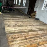 The Victorian floorboards were replaced like for like with specialist boards around two inches thick, suitable for an engineering floor, which also had interwoven steel bands to strengthen the floor itself.