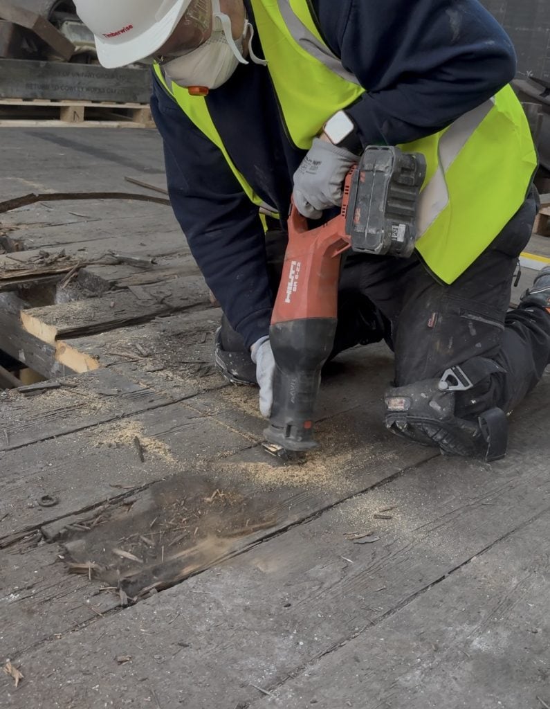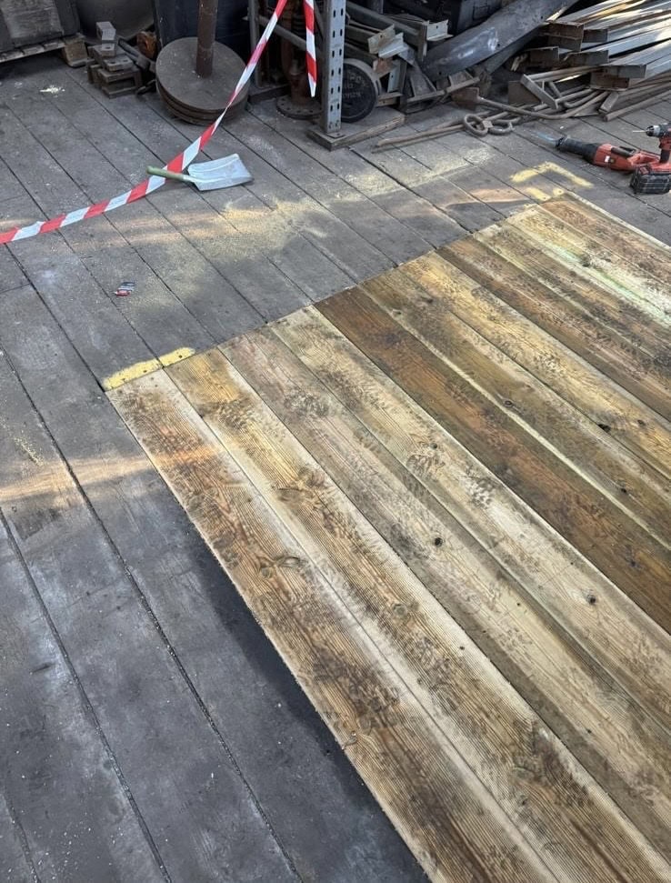With Health and Safety in the forefront of our minds we had crash decks installed below the floor so that our technicians could work safely on the replacement of the floor.