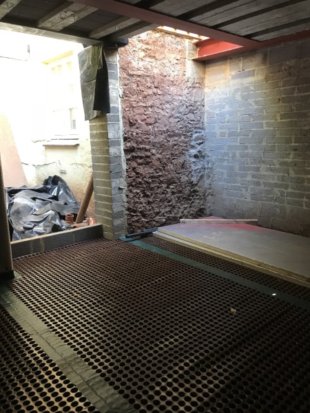 The basic principle is that the walls and floor are lined with the membrane which effectively allows water in and therefore equalises any hydrostatic pressure. Once the water has entered the building behind the membrane it will drain away through a series of perimeter drainage channels and into a sunken sump and pump chamber.