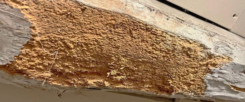 You might also notice frass around or underneath the emergence holes created by the beetles. Frass is woodworm waste, and it looks a little bit like dust. Fresh frass appearing around your timber is a sign that larvae could be alive and active within your timber, eating their way through the timber.